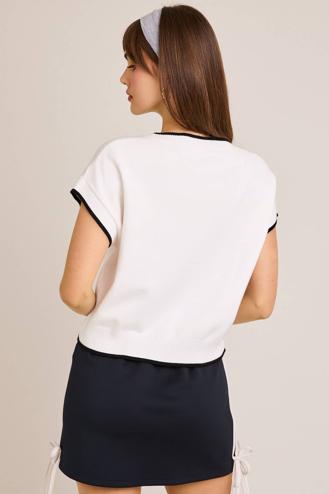 Sleeveless Knit Sweater Top with Glittery Embo Yarn. Model is wearing a size small.